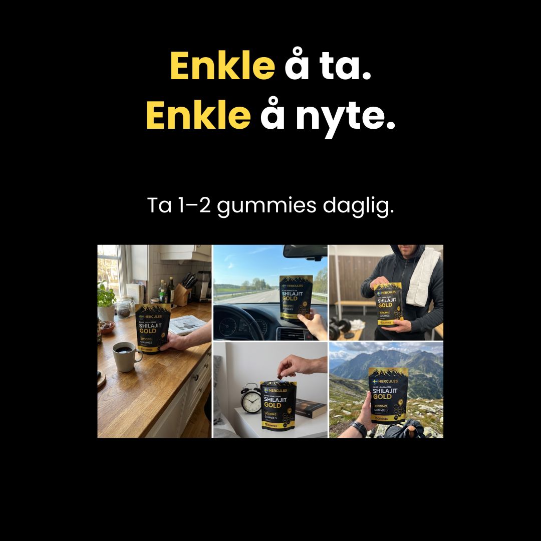 Hver gummy kombinerer shilajit med nøye utvalgte urter og mineraler som støtter utholdenhet, restitusjon, hormonell balanse og daglig ytelse.